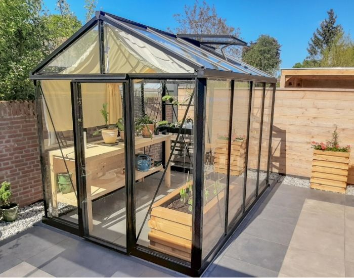 Begin met tuinieren in stijl met Janssens Junior tuinkassen. Kies uit klassiek zwart of aluminium.